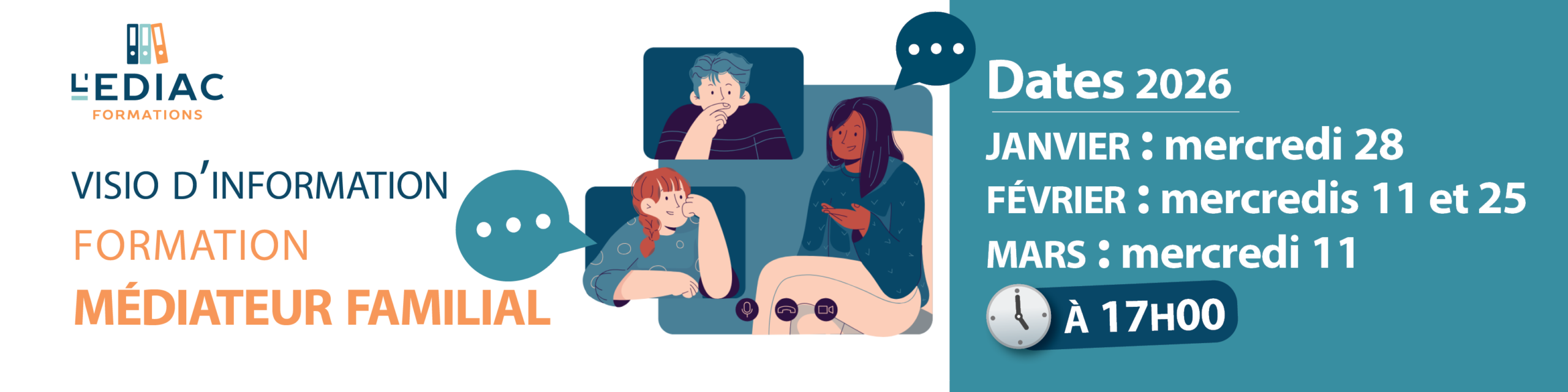 Participez à nos visios d’information sur la formation au diplôme d’état Médiateur familial à l’Ediac Formations :